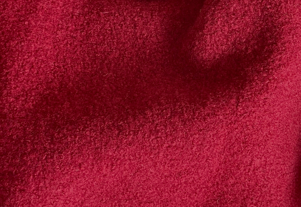 A mid-weight boiled wool coating in rich cranberry red. It’s difficult to find such perfect boiled wool, and in such a luscious color! This endearing boiled wool is pliable, and would be an excellent for a sporty jacket, a vest, or a coat. 100% wool. 45" wide.