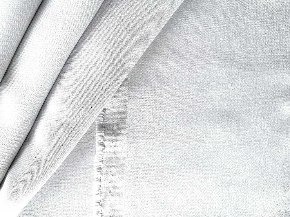 A heavier dress-weight stretch rayon viscose crepe in iceberg white - with a touch of lycra, this matte viscose is perfect for dressy pants or a softly sculpted jacket. Made in Italy and used by Cushnie, New York. 93% viscose and 7% lycra blend. 53" wide.