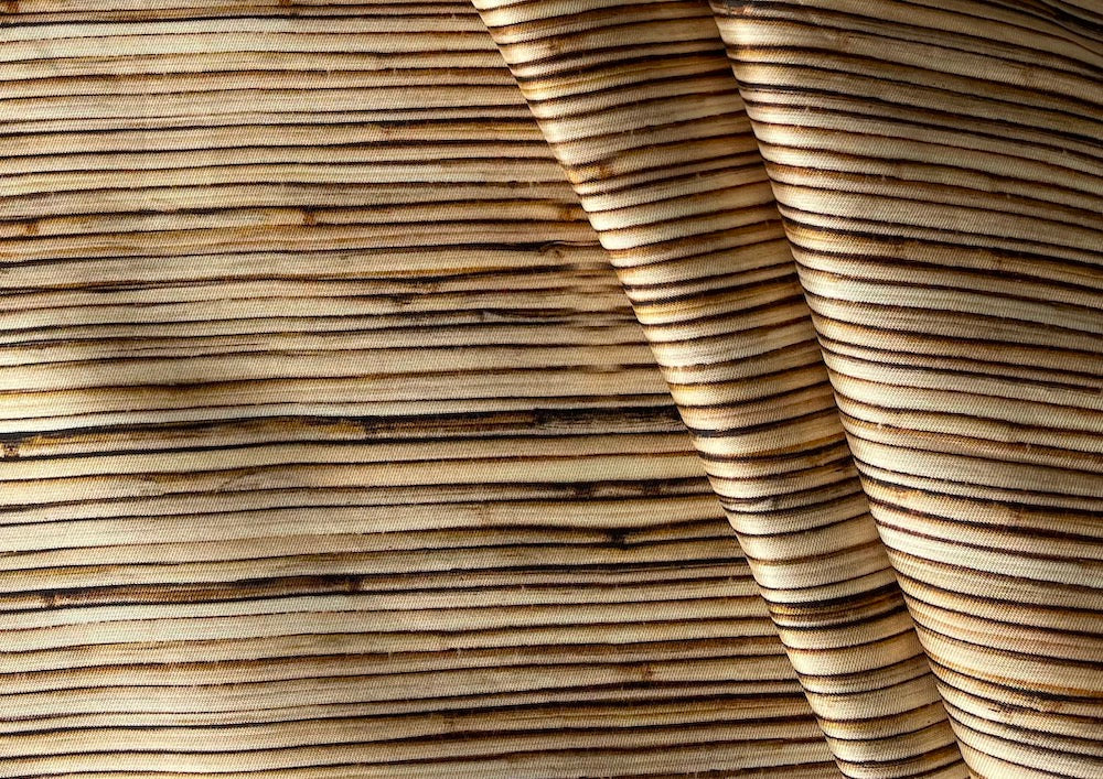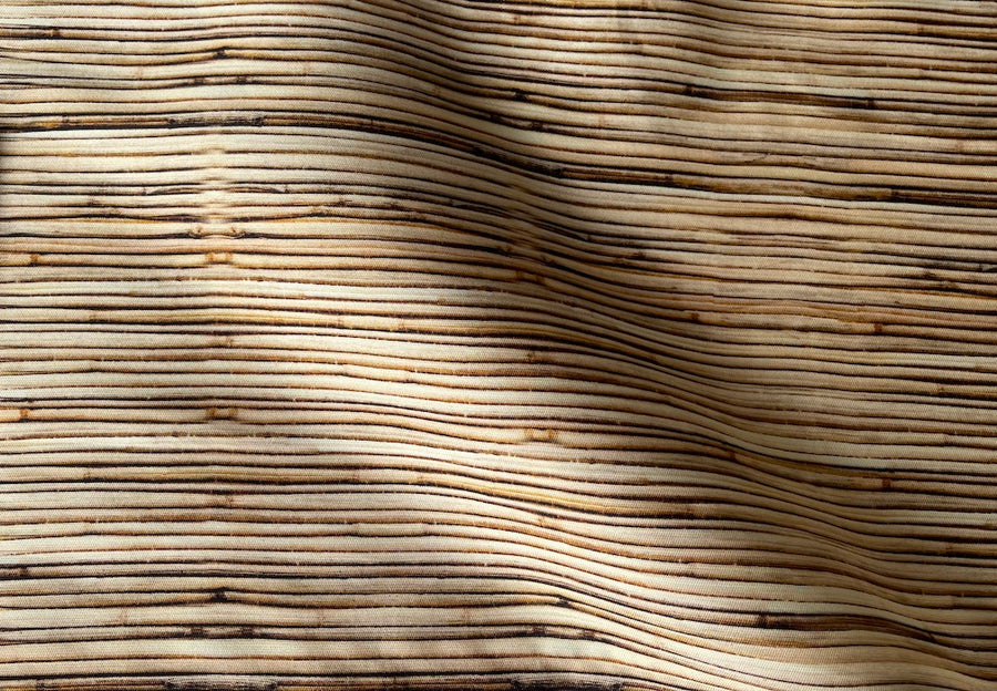 A structured silk in a moderne stripped wood grain print in warm shades of beige, golden brown, coffee, and black - similar in weight to a shantung mikado, this silk is perfect for slacks, jackets, or interior use. Made in Italy and used by Dolce & Gabbana. 100% silk. 56" wide.