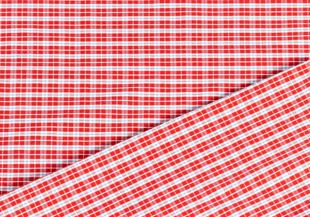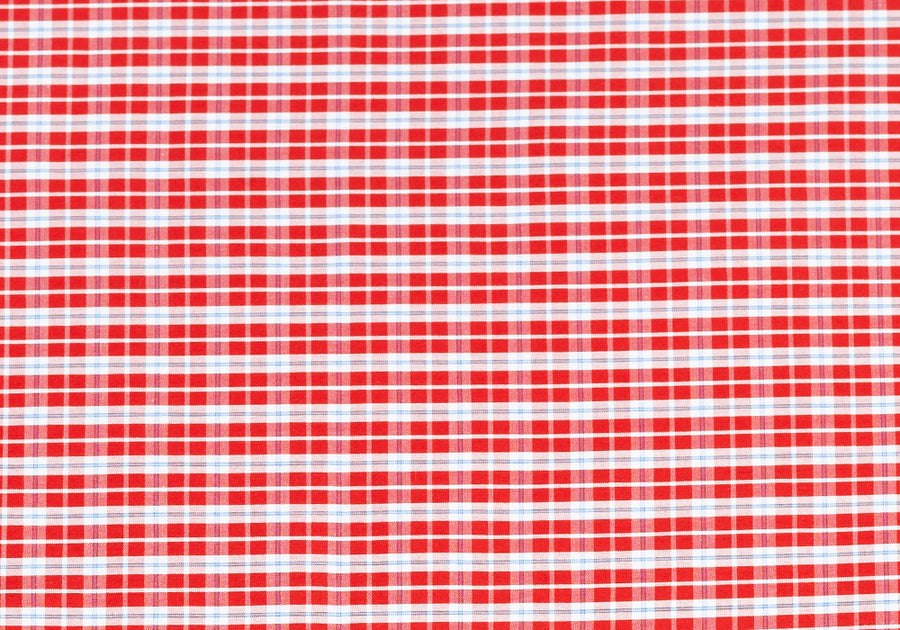 A designer, 2-ply cotton shirting, a handsome bright red, blue, and white plaid in a 1/2" repeat - perfect for a cool summer short-sleeved shirt! Made in Italy. 100% cotton. 61" wide.
