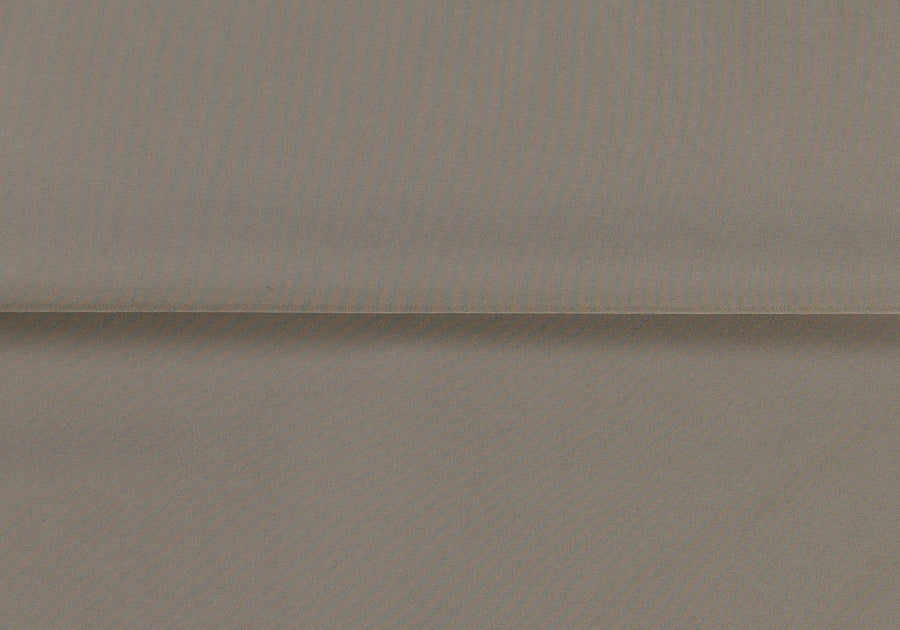 A designer waterproof polyester rainwear fabric in mid taupe - perfect for a raincoat, a jacket, or a hat. Made in Italy. 57" wide. 100% polyester.