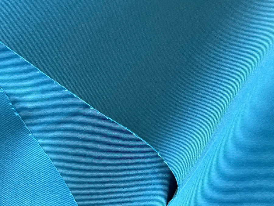 A double-faced cotton canvas twill in gorgeous cerulean sea - this high-end cotton is perfect for a tailored a-lined coat or a cruise-worthy jacket. Made in Italy. 100% cotton. 56" wide.