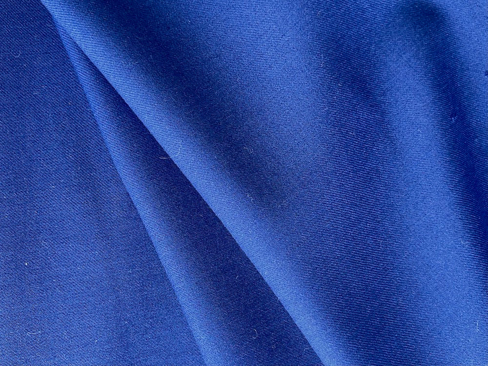 A mid-weight wool twill in dramatic cobalt blue - with a touch of lycra, this smooth, drapey woolen is perfect for tunics, culottes, and slacks. Made in Italy. 98% wool and 2% lycra blend. 58" wide.