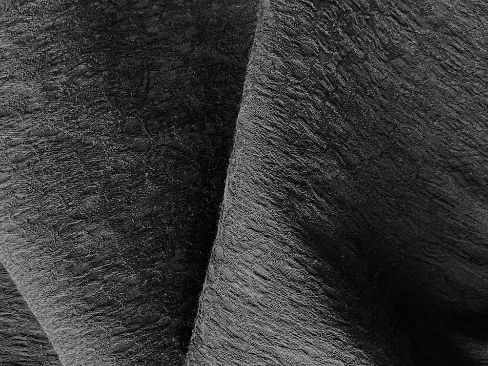 A stretch viscose blend brocade in an elegant, abstract black-on-black weave - this understated brocade would make comfy fitted pants, a flattering sheath dress, or a perky bolero. Made in Italy. 74% viscose, 22% nylon, and 4% lycra blend. 57" wide.