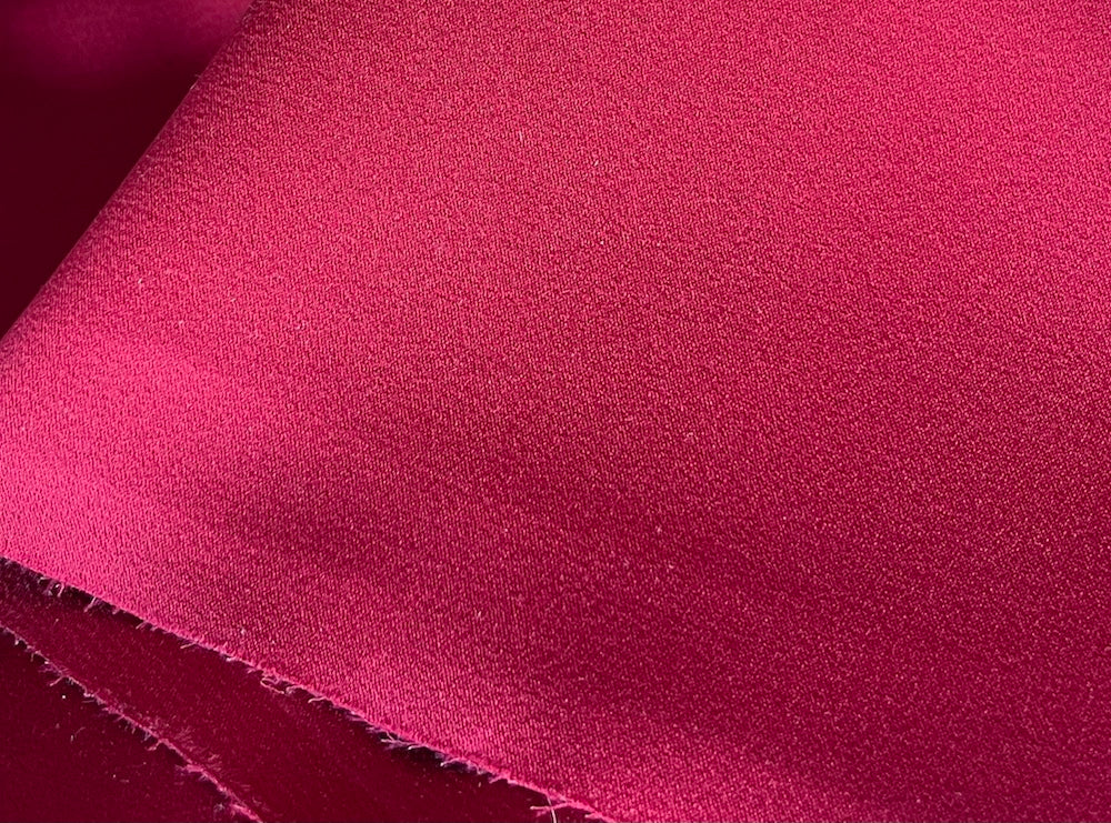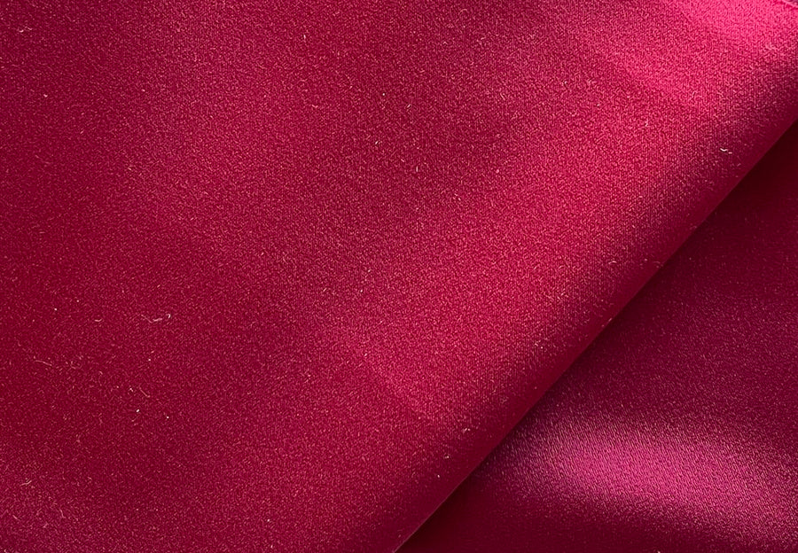 A heavy, double-faced viscose blend duchess satin in rich, warm cranberry - with a stiffer hand, this gorgeous satin is perfect for structured evening dresses, tailored coats, and straight-legged pants. Made in Italy. 73% acetate and 27% viscose blend. 51" wide.