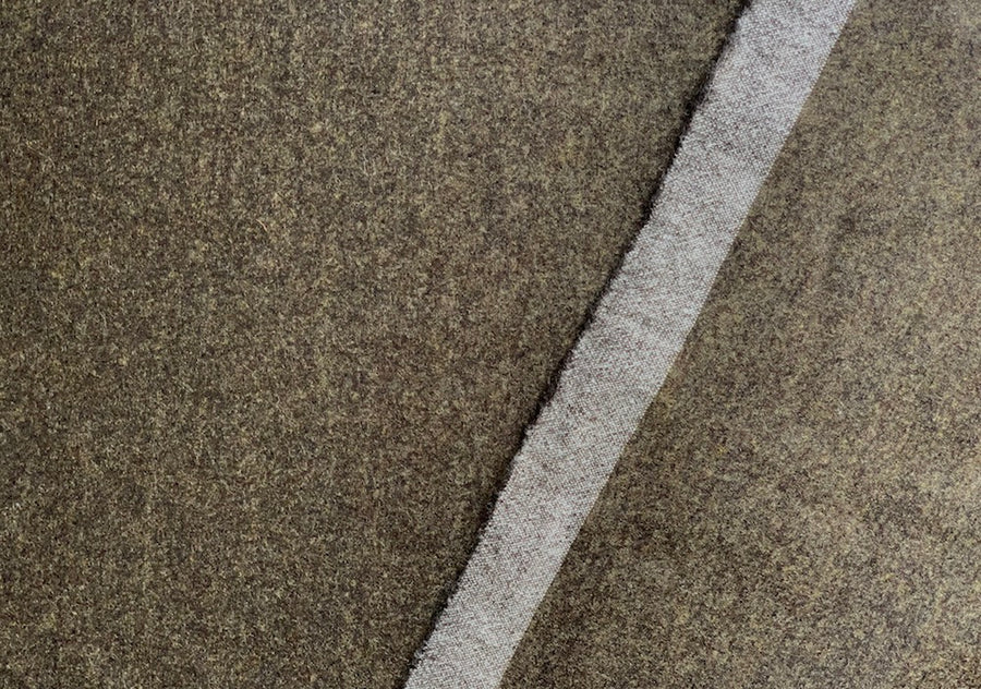 A classic stretch wool flannel in a handsome heathered bronze, with a distinctive white selvedge - with it's touch of lycra, this wool flannel is superb for slacks, a suit, or a skirt. Made in Italy and used by F. Filippi, a fine Milanese clothier. 97% wool and 3% lycra. 62" wide.
