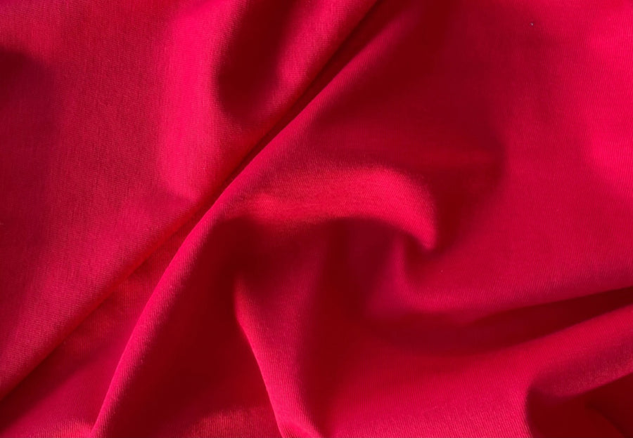 A high quality cotton lisle knit in fabulous flamingo pink - this light-weight cotton knit is the perfect weight for a comfortable dress, lounge-wear, or T-shirts. Made in Italy. 100% cotton. 68" extra wide.