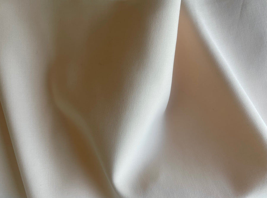 Finest quality, mid-weight cotton crepe suiting in vanilla peach - elegant and timeless, this fabric is perfect for a sheath dress and matching jacket or a warm weather coat. Made in Italy. 100% cotton. 60" wide.