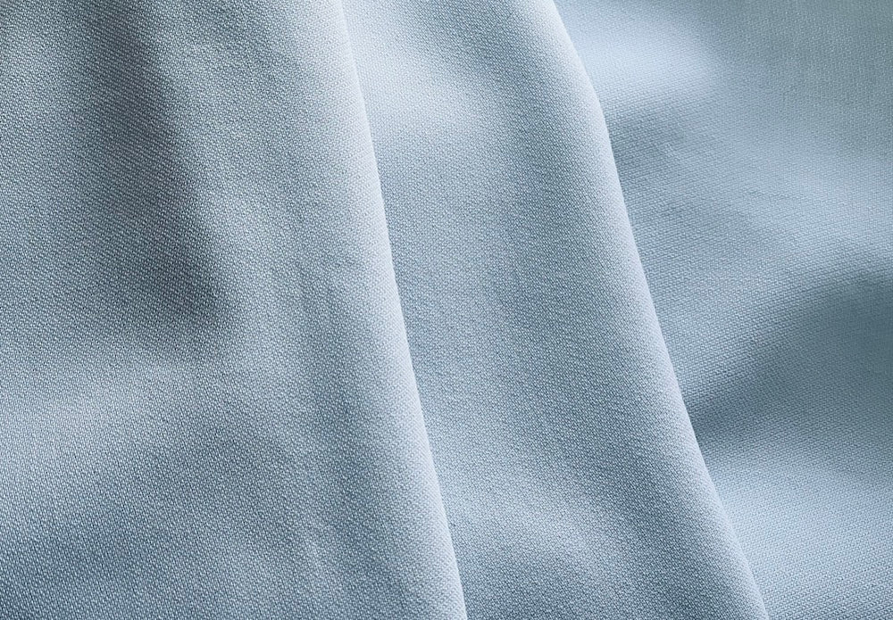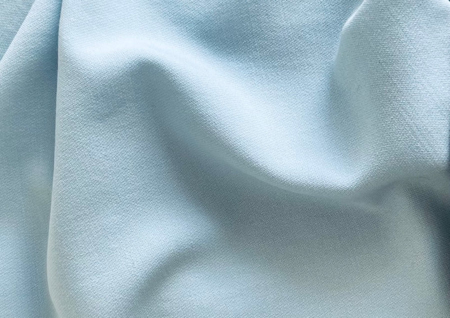 A light to mid-weight stretch wool in a gentle shade of pale baby blue - with a touch of lycra, this woolen is perfect for a sheath dress, slim slacks, or wide-legged palazzo pants. Made in Italy. 96% wool and 4% lycra blend. 60" wide.