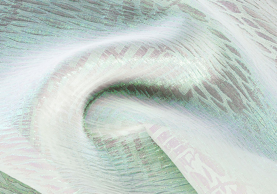 A gossamer, semi-sheer, iridescent white lame silk georgette with a subtle wavy texture - great for a wrap or a vintage-style blouse...or your very own fairy wings! Made in Italy. 70% silk and 20% lurex. 57" wide.