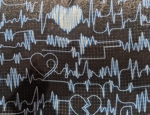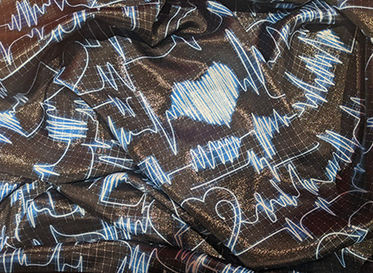Feel your heart beat faster for Italian silk & lurex chiffon in a neon blue and black cardiographic masterpiece - this delightful silk chiffon is perfect for a dress, blouse or dramatic shawl! Made in Italy. Silk and Lurex blend. 55" wide.