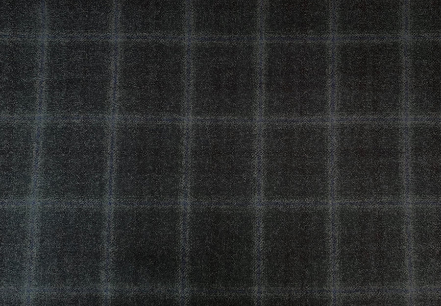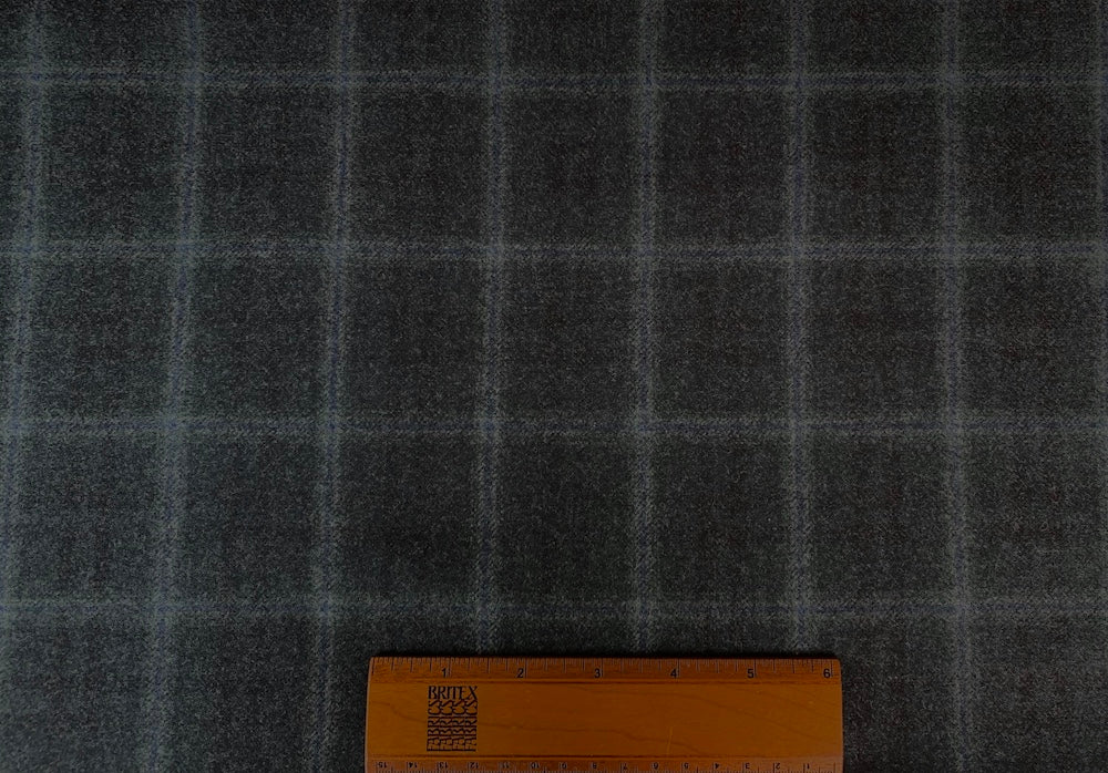 A soft and pliable wool flannel in a heathered charcoal grey plaid with subtle blue and smoke grey accents - with its classic timeless quality, this woolen is perfect for jackets, suits, slacks, vests and skirts. Made in Italy. 62" wide.