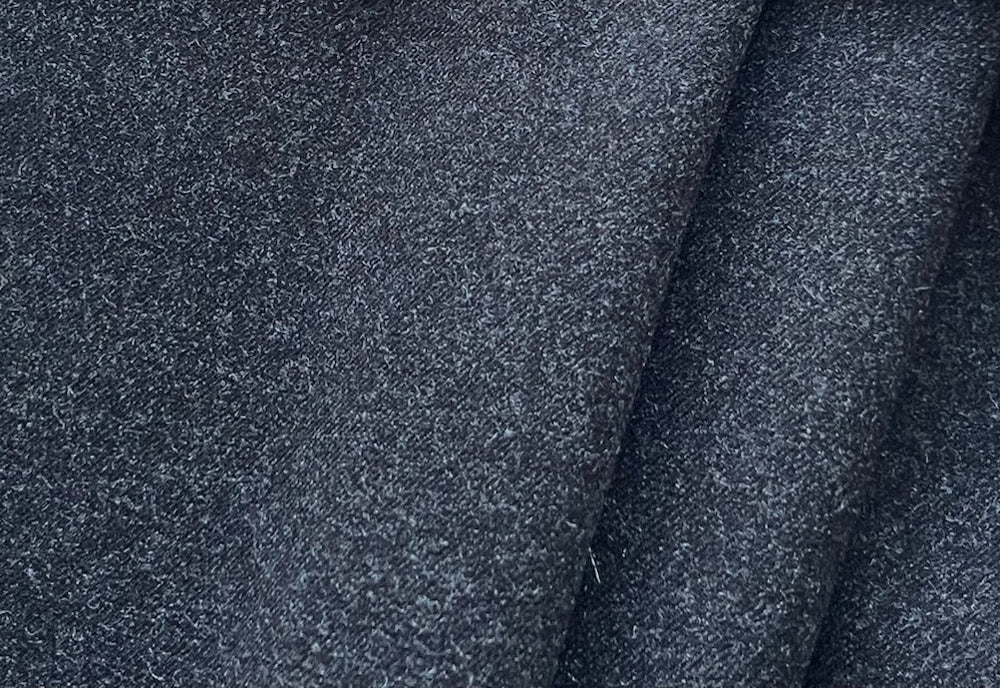 A stretch polyester and cotton blend in heathered storm cloud grey. Wool-like in appearance, this fabric is eminently travel-worthy, washable, and perfect for tailored tops, dresses, or tunics. 80% polyester, 15% cotton, and 5% lycra. 58" wide.