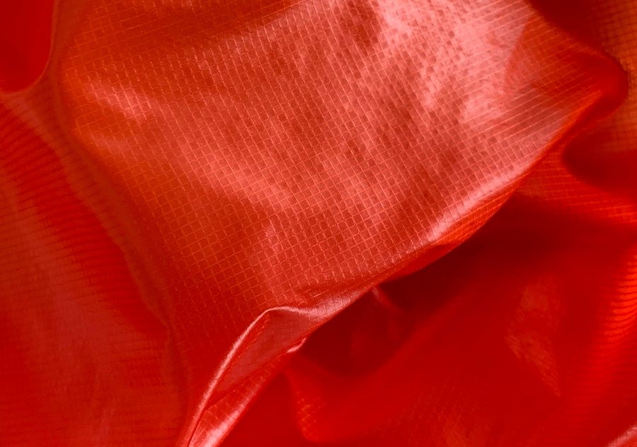 A featherlight micro rip-stop polyester in a brilliant orange. Water-resistant, this polyester rip-stop is perfect for that lightest of outerwear layers for hiking or just strolling in style. Made in Italy and used by the house, Herno. 59" wide. 100% polyester.
