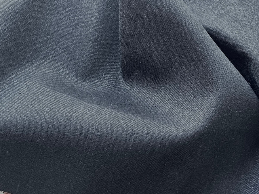 An understated and unique stretch wool blend twill in charcoal grey - with a touch of lycra and a subtle sharkskin-like sheen, this versatile and elegant woolen is perfect for a sheath dress, a jean jacket style, or dressy pants. Made in Italy and used by high-end designer. Wool, silk, linen, and lycra blend. 62" wide.