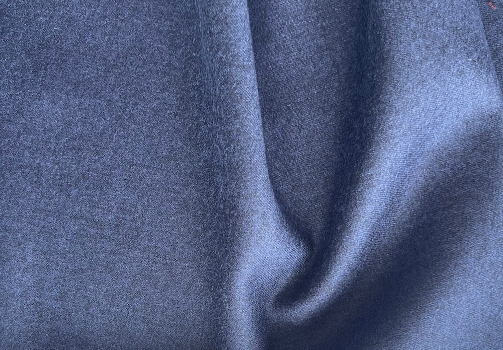 A high-end wool flannel in cross-woven in periwinkle and black - smooth and soft, this classic wool flannel is perfect for tailoring including slacks, a sheath dress, a jumper, or a jacket. Made in Italy. 100% wool. 62" wide.
