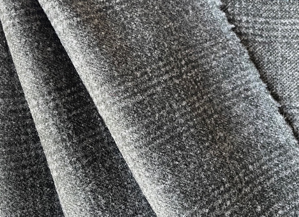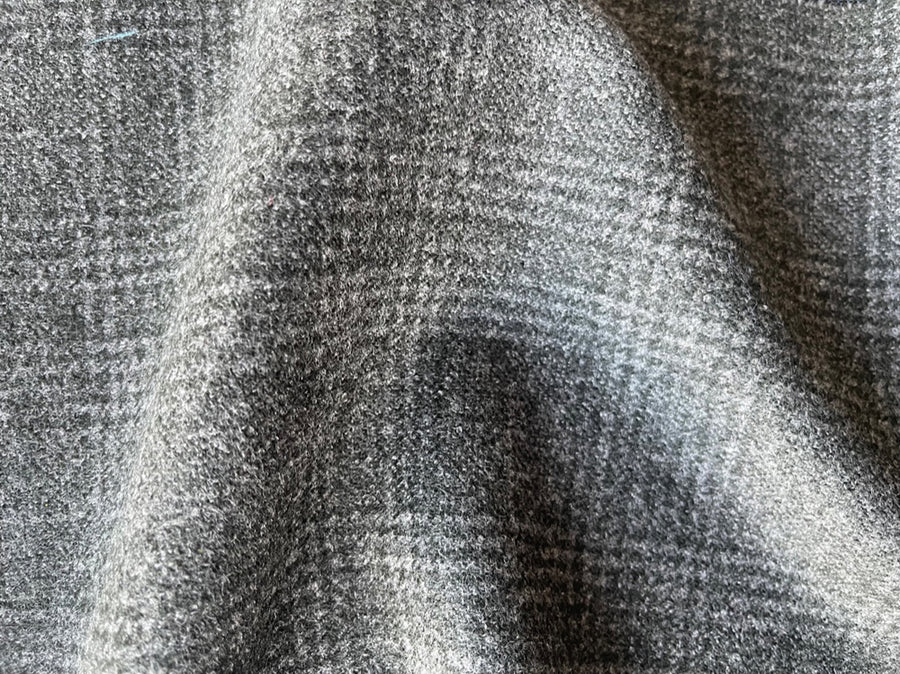 A high-end wool plaid in pine, charcoal, and artichoke - soft and with a slight texture, this soft mid-weight wool is perfect for a wonderful unstructured jacket, culottes, or a softly tailored dress. Made in Italy. 100% wool. 61" wide.
