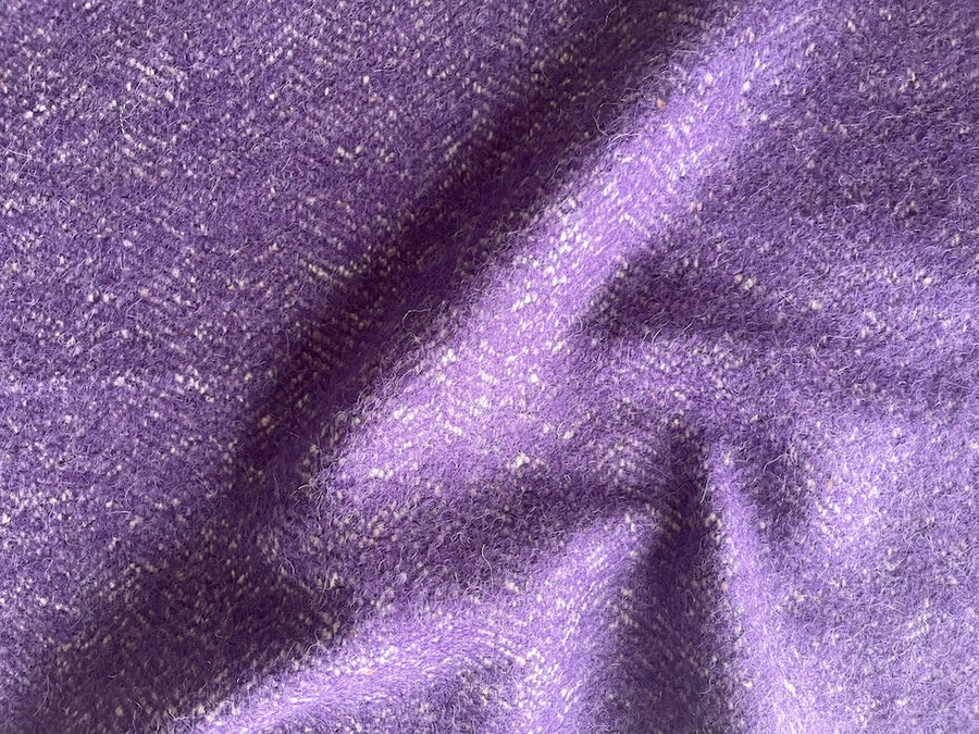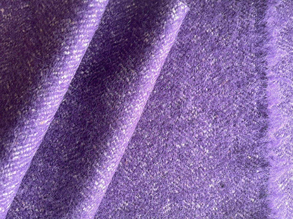 A mid-weight wool tweed in a herringbone weave in shades of purple and lavender - perfect for a French, couture-style jacket, a sheath dress, or a tailored hooded coat. Made in Italy and used by Hugo Boss. 100% wool. 60" wide.