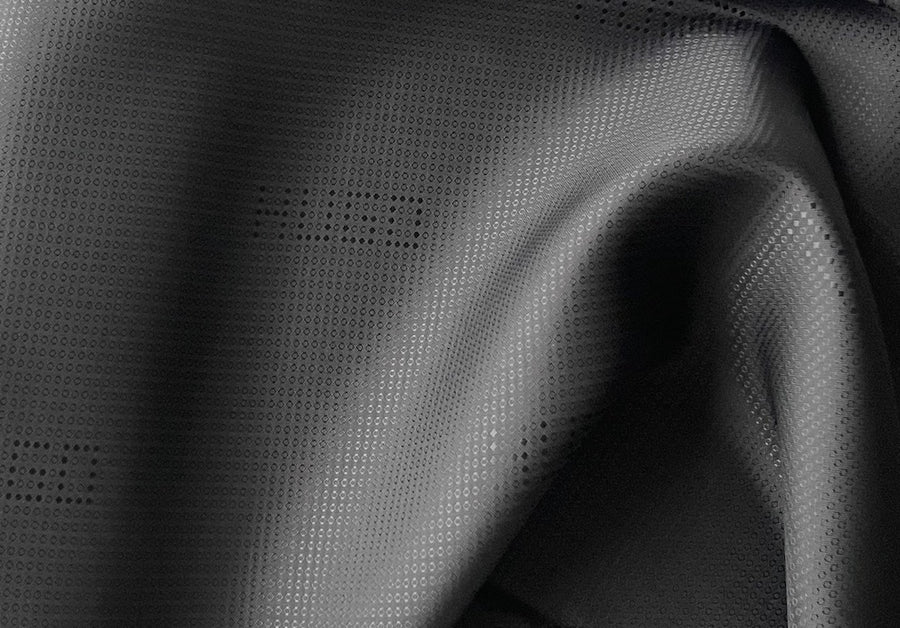 Hugo Boss signature black rayon bemberg twill jacquard lining adorned with a subtle "HUGO" design. Rayon Bemberg linings are our favorite lining for all fabrics including silk, wool, and linen. They're cool to the touch, smooth, non-cling, and cold water washable. Made in Italy for Hugo Boss. 100% rayon viscose bemberg. 58"wide.