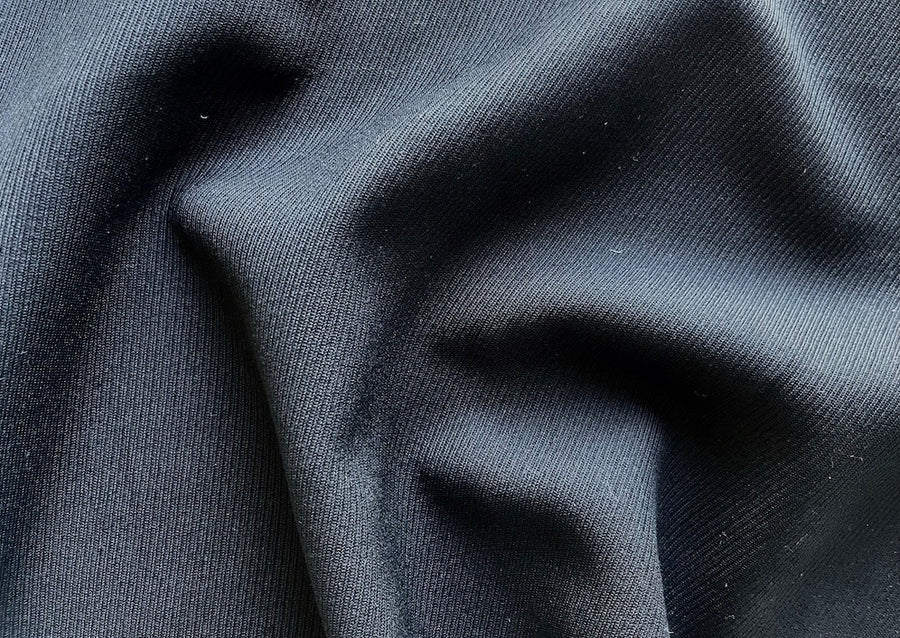 A stretch virgin wool cavalry twill in jet black - with a touch of lycra, this distinctive woolen is the perfect weight for culottes, a full skirt, or a jumper. Made in Italy. 97% virgin wool, 2% nylon, and 1% lycra blend. 57" wide.