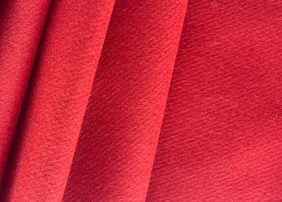 A mid-weight wool melton twill coating in sweet 'n stunning vermillion orange - this lightly brushed, handsome melton is perfect for a sporty overcoat, bed throw, or a hooded jacket. Made in Italy. 100% wool. 62" wide.