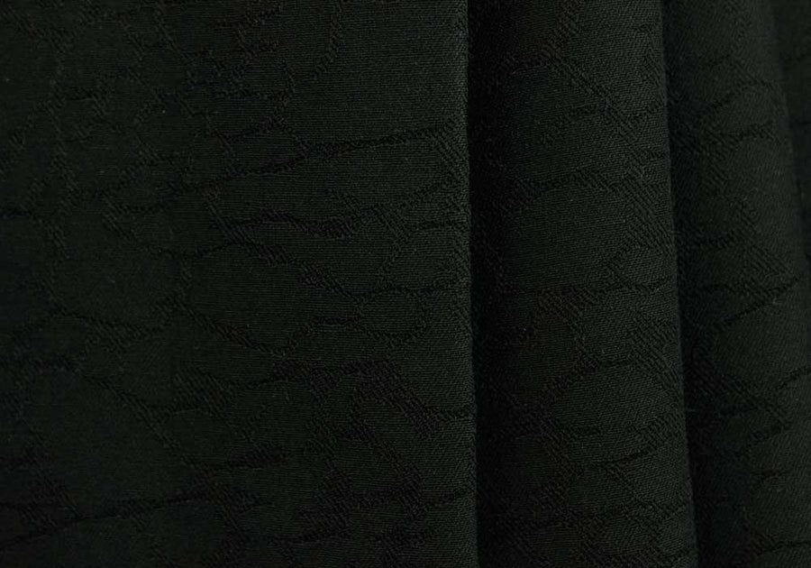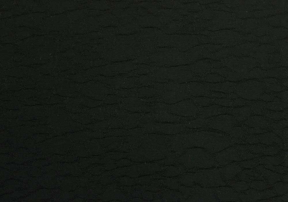 A lovely midweight stretch rayon blend in rich black, with a subtle jacquard pattern inspired by giraffe skin - perfect for a tightly fitted dress or skirt. Made in Italy. One-way stretch - high degree of stretch. 74% viscose, 22% nylon, and 4% lycra. 58" wide.