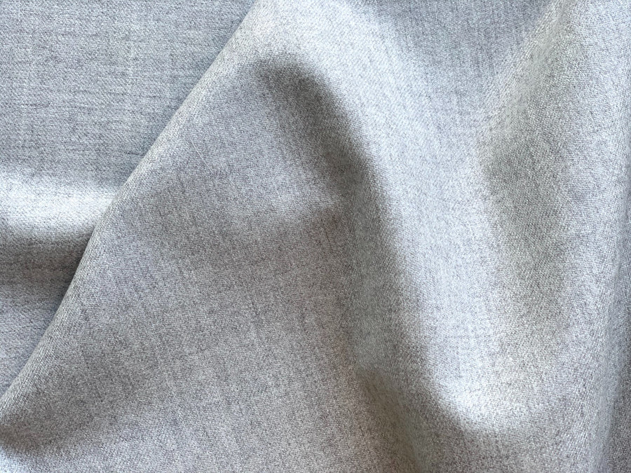 A high-end wool flannel in difficult to find heathered platinum gray - light-weight and soft, this woolen would be superb for slacks or a jacket. Made in Italy by a high-end mill. 100% wool. 60" wide.