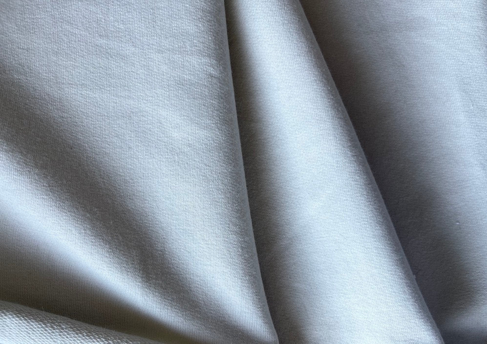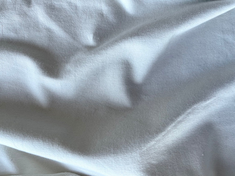 A lighter weight French terry cotton sweatshirt knit in elegant alabaster off-white - with a touch of Lycra, this this sweatshirting is the perfect weight for loungewear or a pajama top and bottom. Made in Italy. 96% cotton and 4% lycra blend. 72" extra wide.