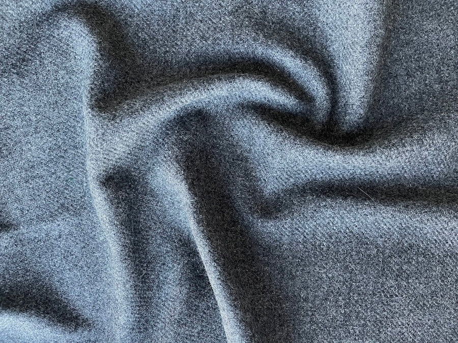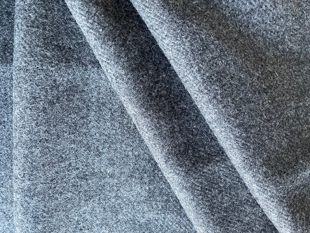 A mid-weight wool Shetland flannel twill in a mélange heathered dark smoke grey - this lightly brushed flannel is perfect for tailored jackets, slacks, or vests. Made in Ireland. 100% wool. 60" wide.