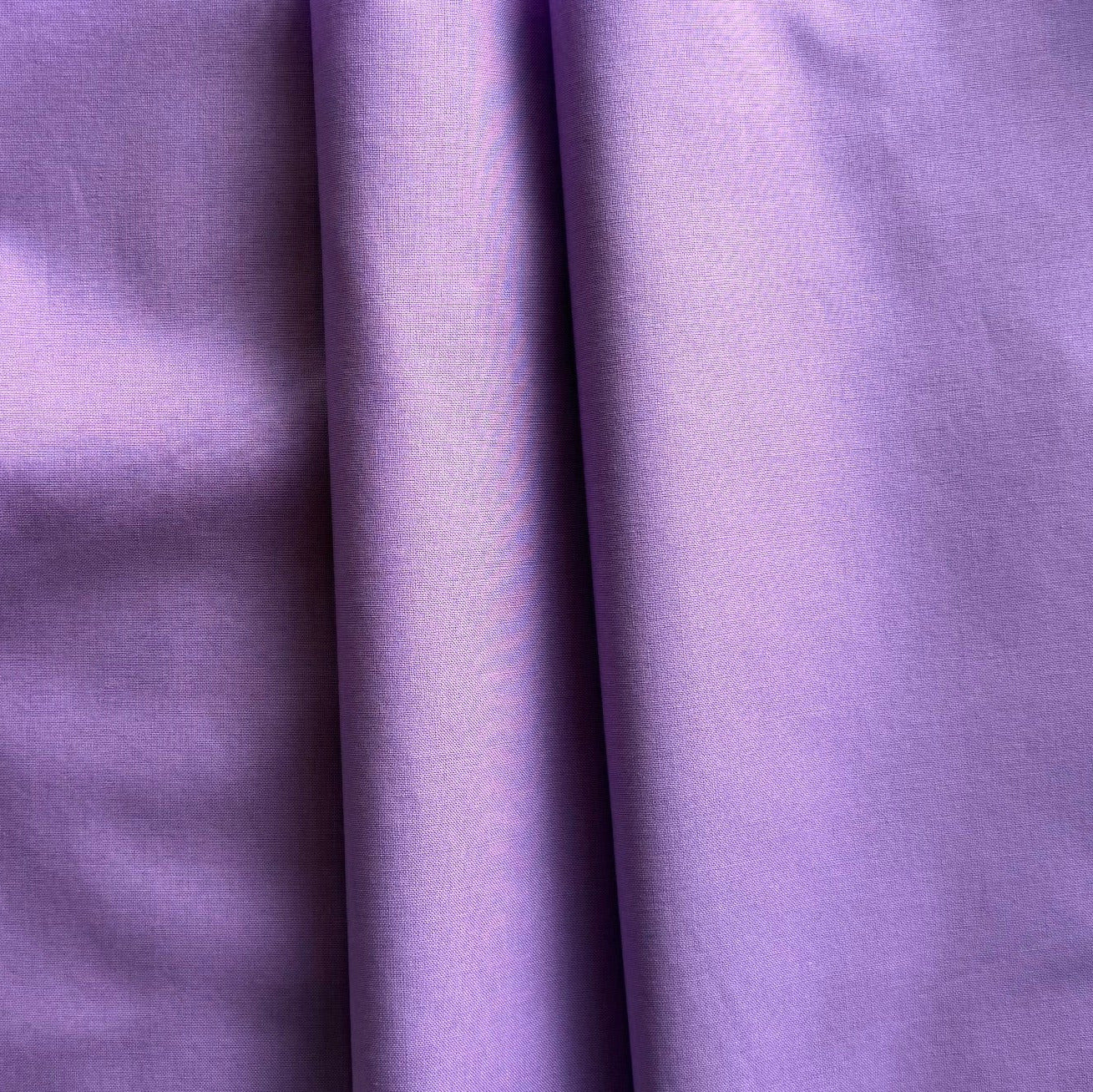 A high density quilting cotton in lavender - Machine wash warm with like colors. do not bleach. tumble dry medium setting. remove promptly. use warm iron if necessary. Cotton Couture is high quality, high density, machine washable 100% cotton fabric. Perfect for a blouse, nightwear, or a shirt. 100% cotton. 44" wide.