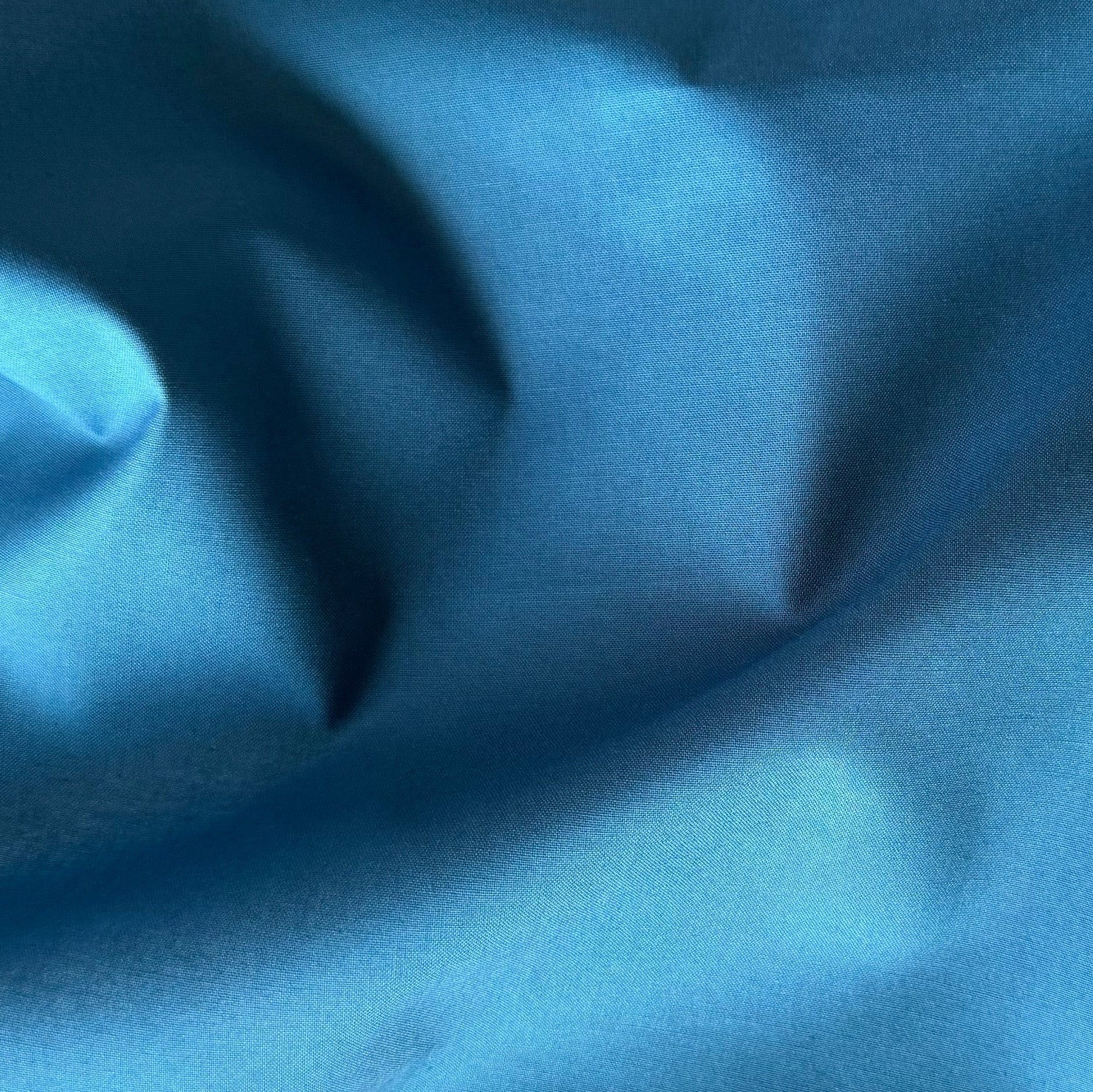 A high density quilting cotton in Pacific blue - Machine wash warm with like colors. do not bleach. tumble dry medium setting. remove promptly. use warm iron if necessary. Cotton Couture is high quality, high density, machine washable 100% cotton fabric. Perfect for a blouse, nightwear, or a shirt. 100% cotton. 44" wide.