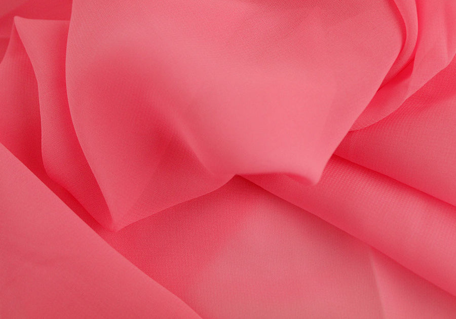 A polyester chiffon in neon french pink - perfect for a blouse or a scarf. 100% polyester. 56" wide.