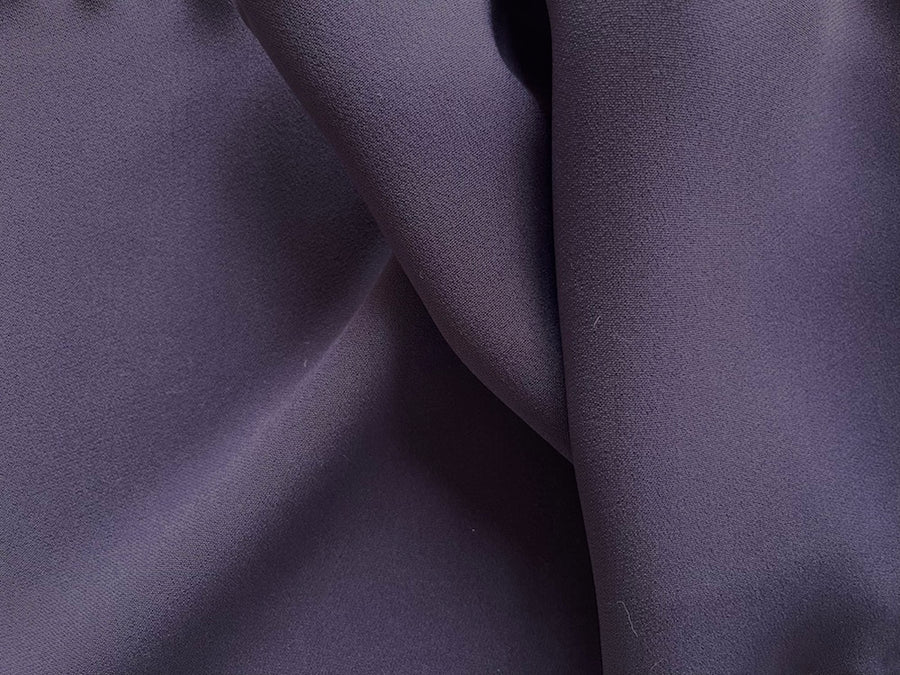 A mid-weight stretch viscose blend crepe in preciously delicious plum - with a touch of lycra, this matte crepe is perfect for flowing pants or a tailored jacket. Made in Italy. 96% viscose and 4% lycra blend. 54" wide.