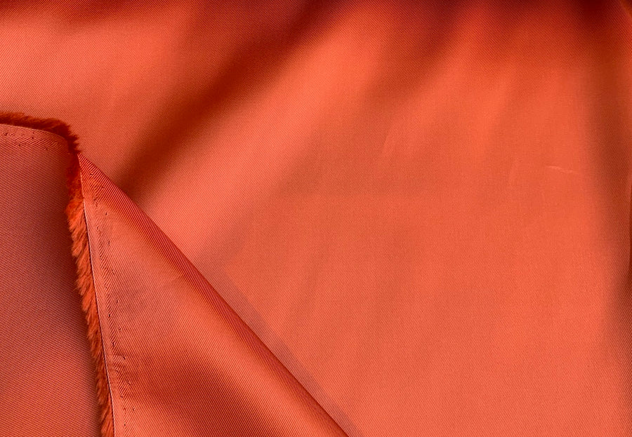 Pumpkin orange viscose twill lining -- heavier than many of our linings, this lining is ideal for jackets or coats. Made in Italy. 100% viscose. 57" wide.