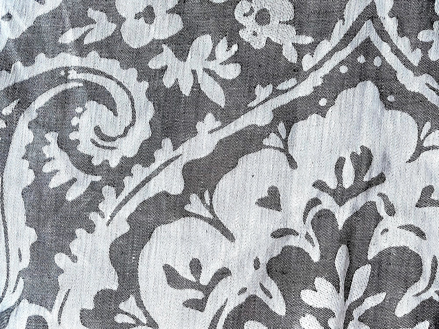 A reversible mid-weight linen damask in an elegant, large-scale paisley design in shades of whale grey and white - perfect for duvet covers, drapes, or table linens. Washable. Made in Europe. 100% linen. 55" wide.