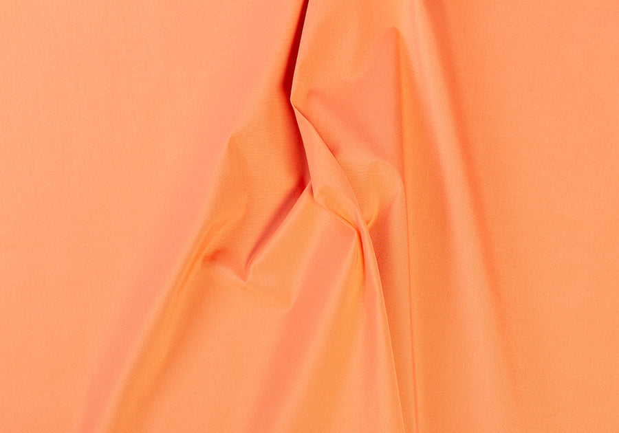 A stretch cotton in ripe cantaloupe orange - with it's stretch and tight weave, this fabulous cotton is great for tailored or wrapped shirts. 3-way stretch. 93% cotton and 7% lycra. 56" wide.