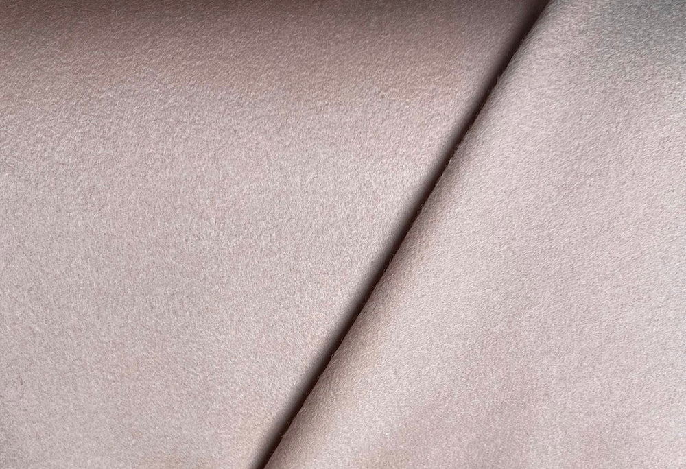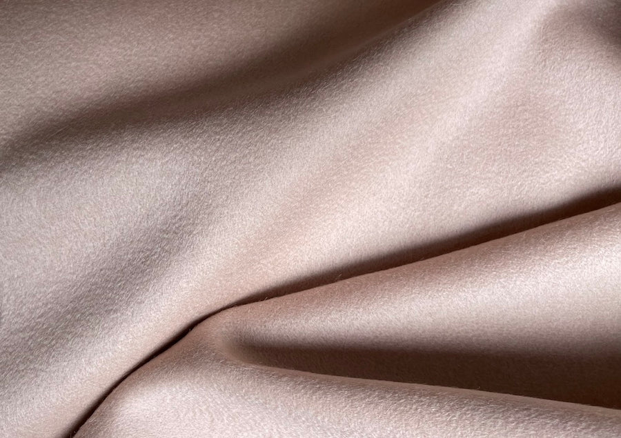 A chic wool and cashmere melton coating in sandy ballet blush - this delicious melton is perfect for an elegant overcoat or a hooded jacket. Made in Italy. 50% wool and 50% cashmere blend. 60" wide.