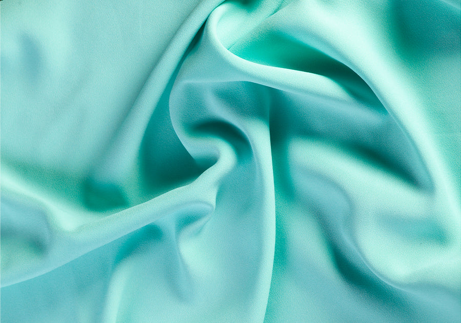 A luxurious reversible rayon crepe back satin in cool sea foam green, heavy and with a beautiful texture - perfect for a cocktail gown or day dress. Made in Italy. Viscose and acetate blend. 54" wide.