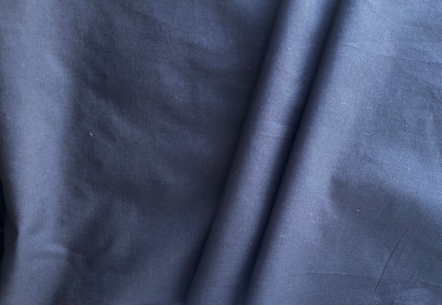 A semi-sheer cotton lawn in deep midnight navy - this smooth, tight-woven, and soft cotton is perfect for summer blouses, linings, or gathered sundresses. Made in Italy. 100% cotton. 59" wide.