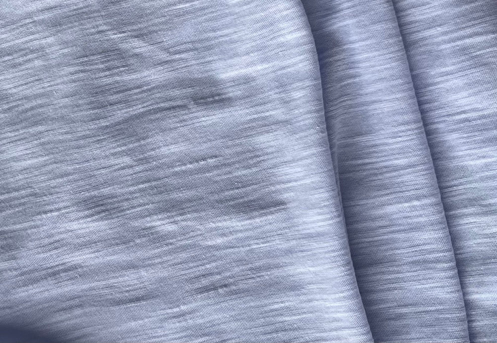 A high-end, semi-sheer cotton jersey knit with a slubby texture and in soft pale lavender - a perfect weight for layering....make a nightgown or a T-shirt! Made in Japan. 100% cotton. 50" wide.