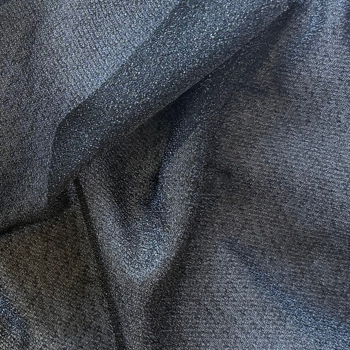 Semi-sheer stretch polyester mesh in black with a hint of sparkle - this light-weight knit mesh is perfect for sleeves, costumes, party-wear, or inserts. 100% lpolyester. 66" wide.