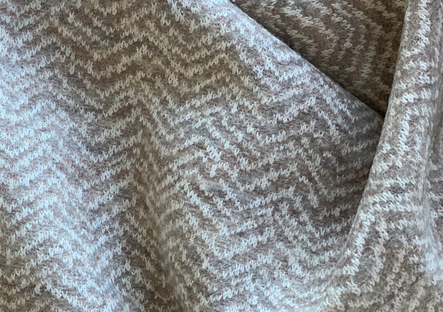 A wool and cotton blend knit in a herringbone pattern in shades of toast - this delicious and elegant knit is perfect for a jacket, skirt, or pants. Made in Italy. 70% wool and 30% cotton. 51" wide.