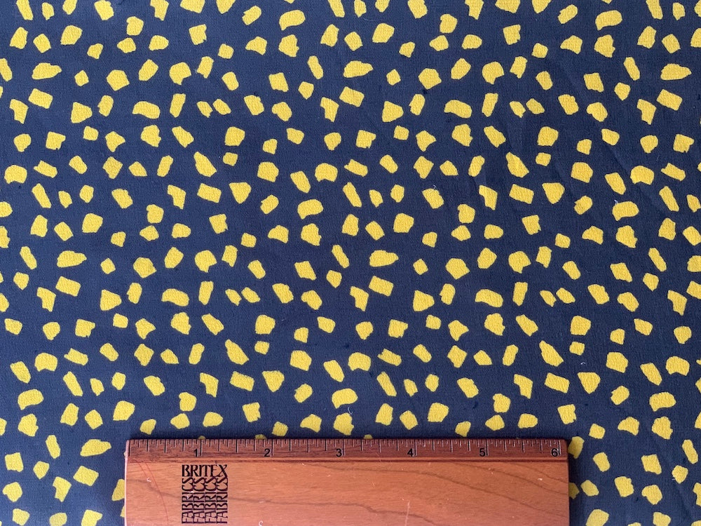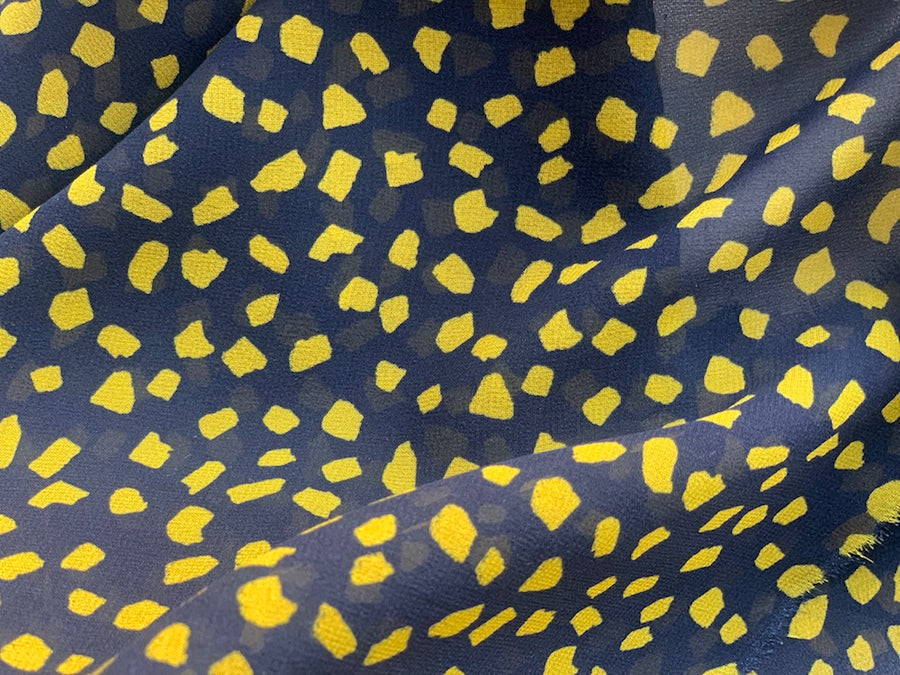 An airy semi-sheer silk chiffon in an all-over butterscotch yellow and black organic geometric print - this delightful silk chiffon is perfect for a glamorous scarf, a beautiful blouse, a soft flowing dress, or an exquisite chemise top. Used by Sies Marjan. 100% silk. 54" wide.