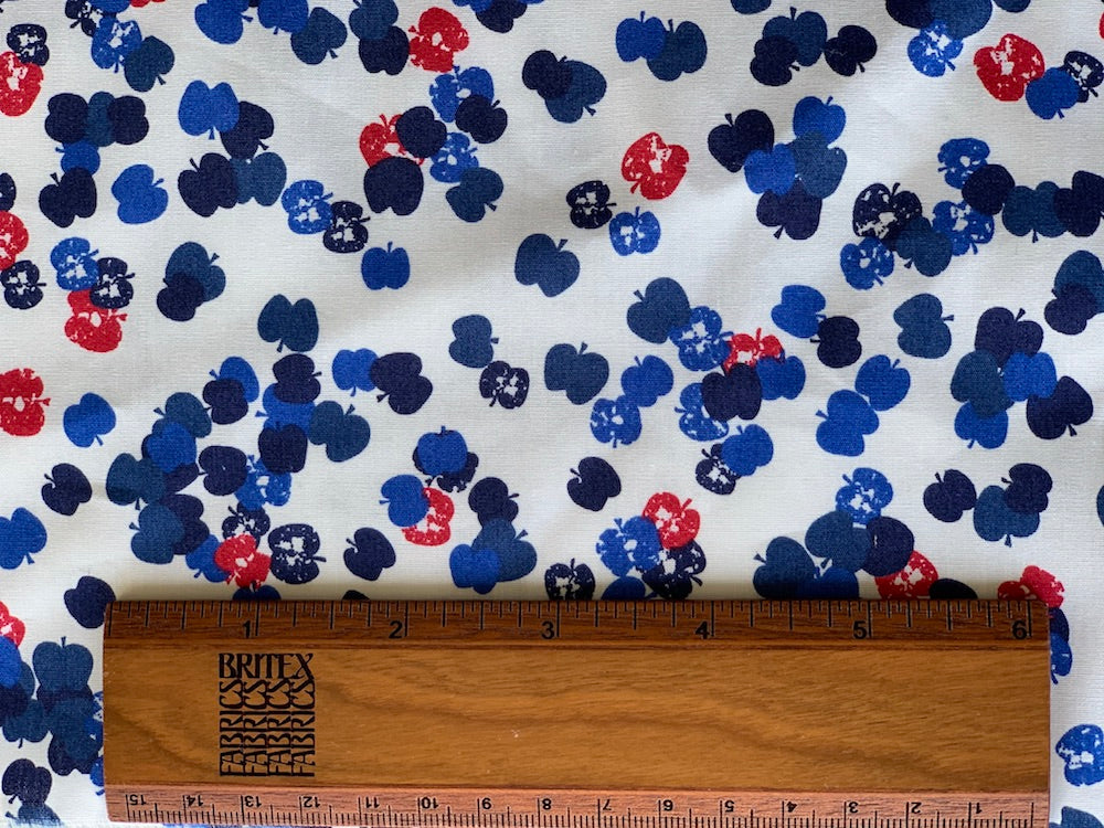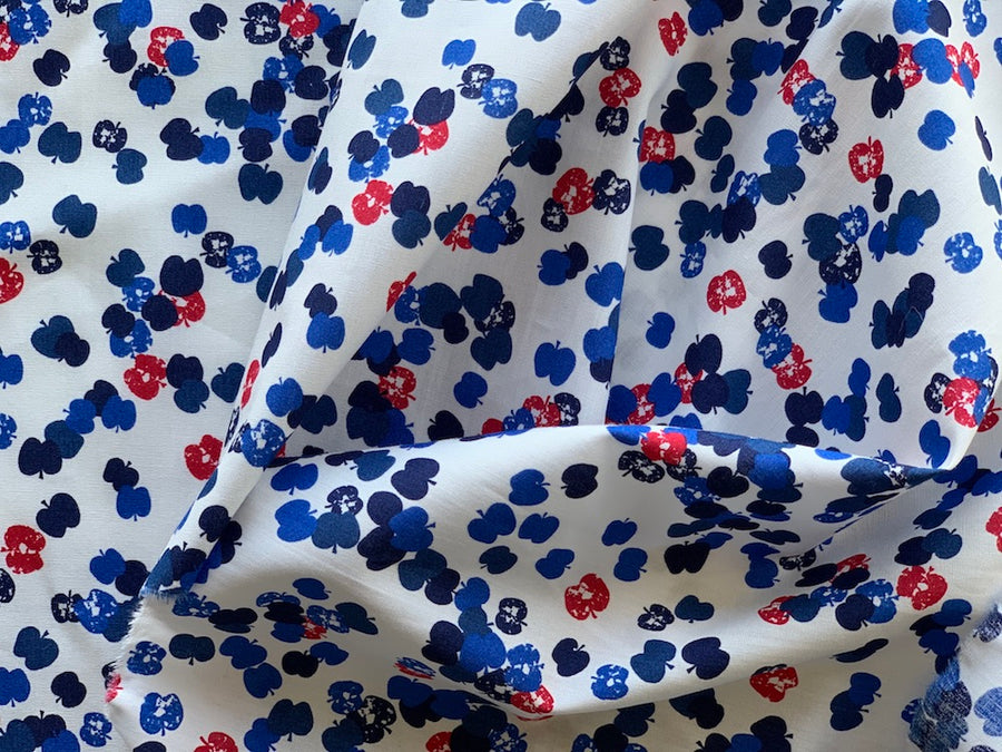 A crisp cotton in a smaller scale, all-over print in shades of royal blue, navy, and red on white - marvelous for slacks, shorts, or a summer frock. Made in Italy. 100% cotton. 59" wide.