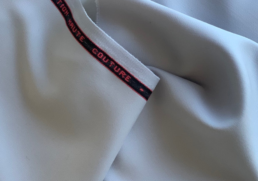 This is our finest wool twill! A classic selvedged wool twill in pale silvery grey, and with a touch of lycra - this fine woolen would be perfect for a luxurious wrap tailored dress, a suit, or pillows. Made in Italy. 97% wool and 3% lycra. 56" wide.