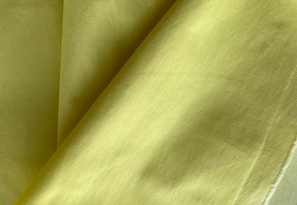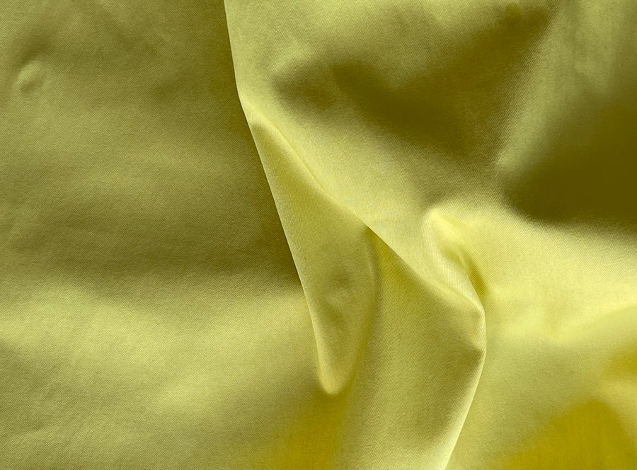 A stretch cotton denim twill in sunny citrine yellow - with a touch of lycra, this stretch denim twill is perfect for a bomber style jacket, jeans, or a straight skirt. Used by Theory. Cotton and lycra blend. 65" wide.