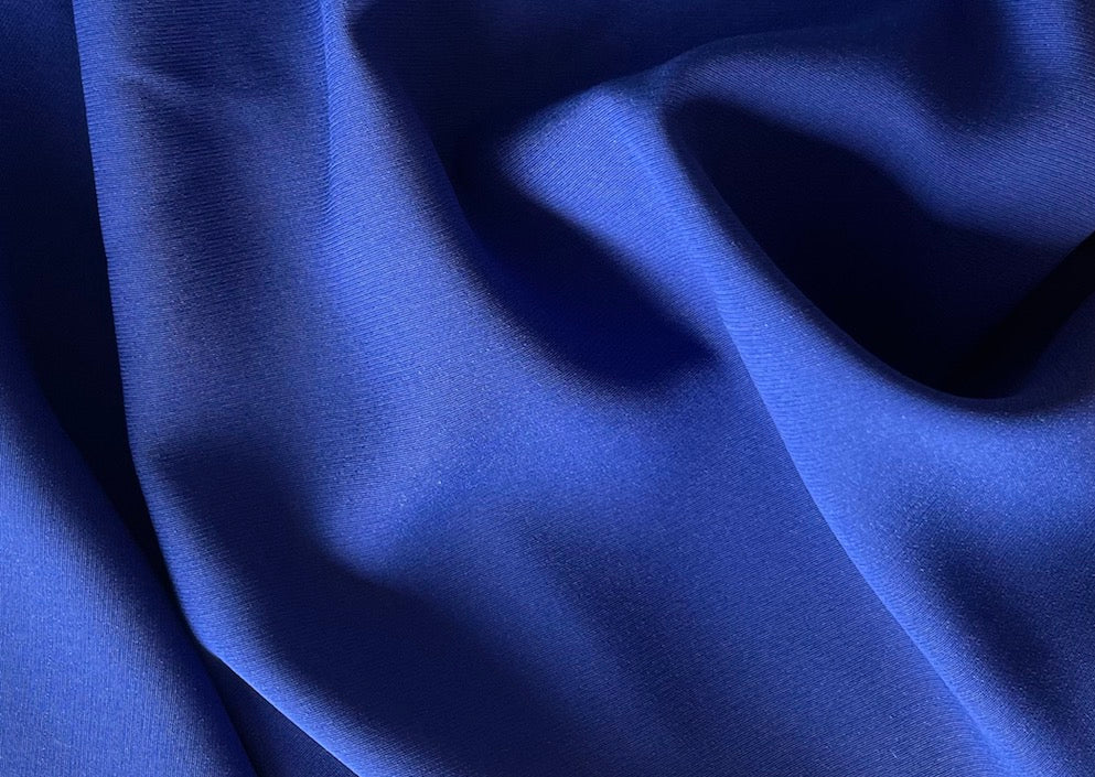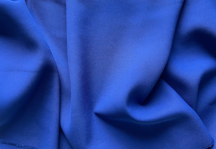 A stretch rayon viscose in velvety cobalt blue - with a touch of lycra, this smooth and silky viscose is perfect for lined wide-legged palazzos or a vintage-style blouse. Used by Theory. Viscose and lycra blend. 43" wide.