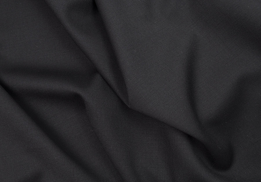A handsome black wool twill tuxedo suiting - perfect for slacks or an outstanding tuxedo. Made in Italy by Tollegno. 100% wool. 60" wide.
