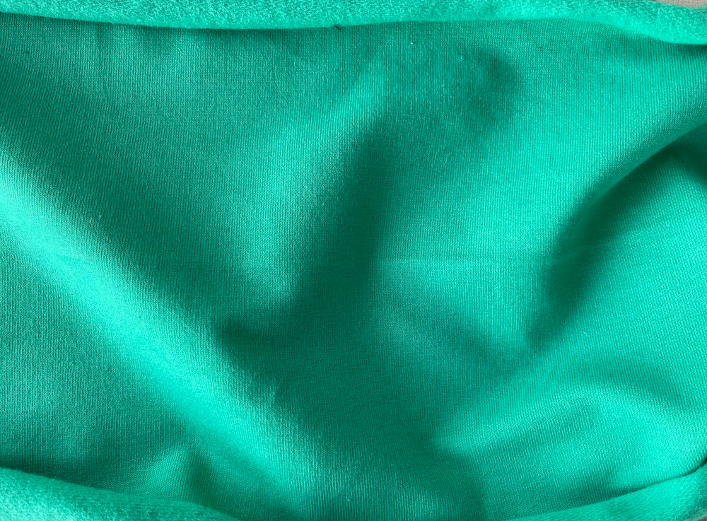 A cotton sweatshirt knit in turquoise lagoon green - this sweatshirting is the perfect weight for a comfortable dress, sweat pants, loungewear, or hoodies. Made in Italy. 100% cotton. 64" extra wide.