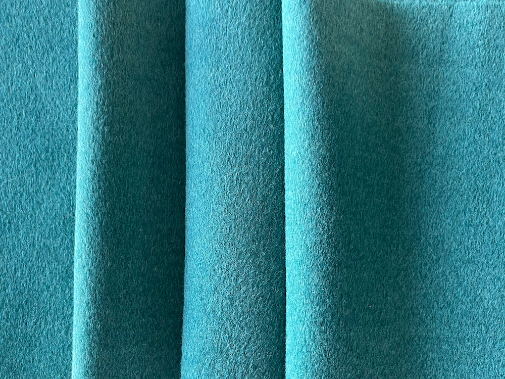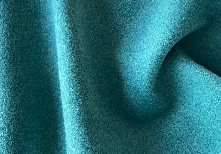 A high quality wool and cashmere coating in lush teal blue - lustrous and lightly brushed, this gorgeous coating is perfect for a fabulous coat, cape, or jacket. Made in Italy. 90% wool and 10% cashmere blend. 58" wide.
